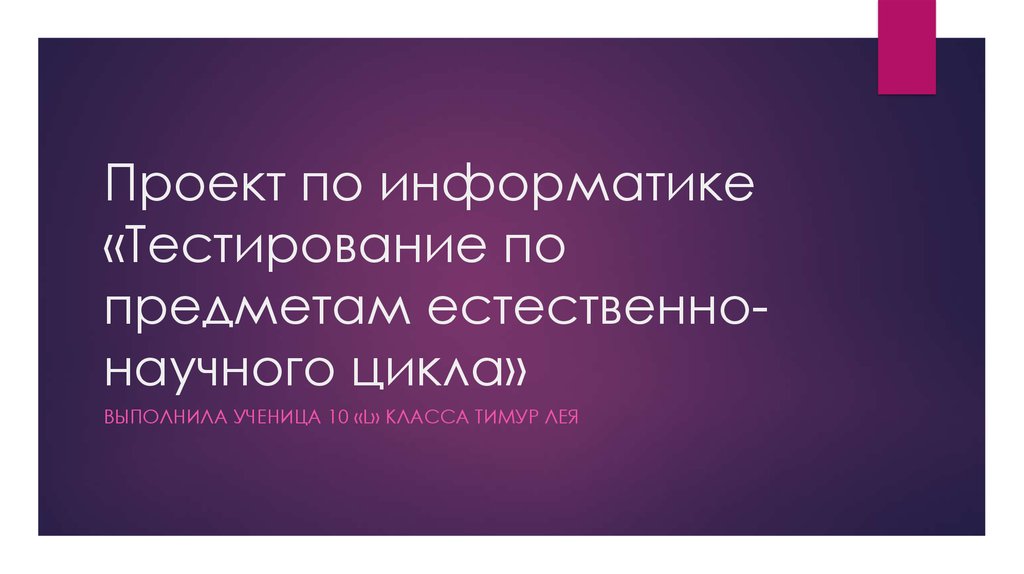 1. Проект по информатике «Тестирование по предметам естественно-научного цикла»