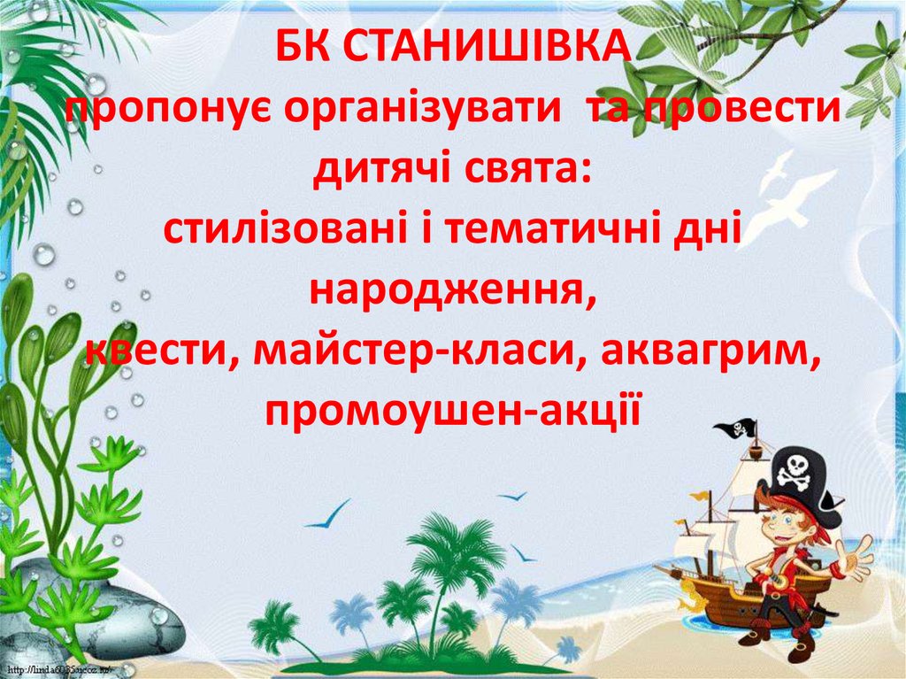 1. БК СТАНИШІВКА пропонує організувати та провести дитячі свята: стилізовані і тематичні дні народження, квести, майстер-класи, аквагрим, про