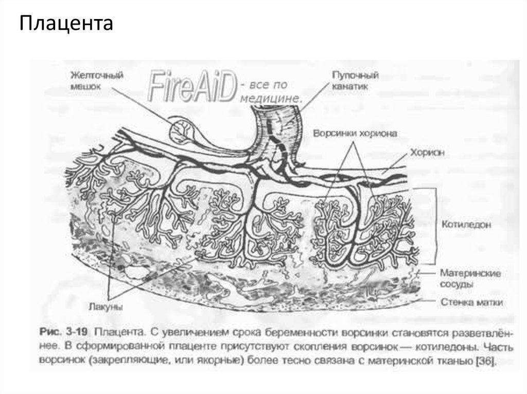 Строение плаценты гемохориального типаПо А. Виткусу с соавт.