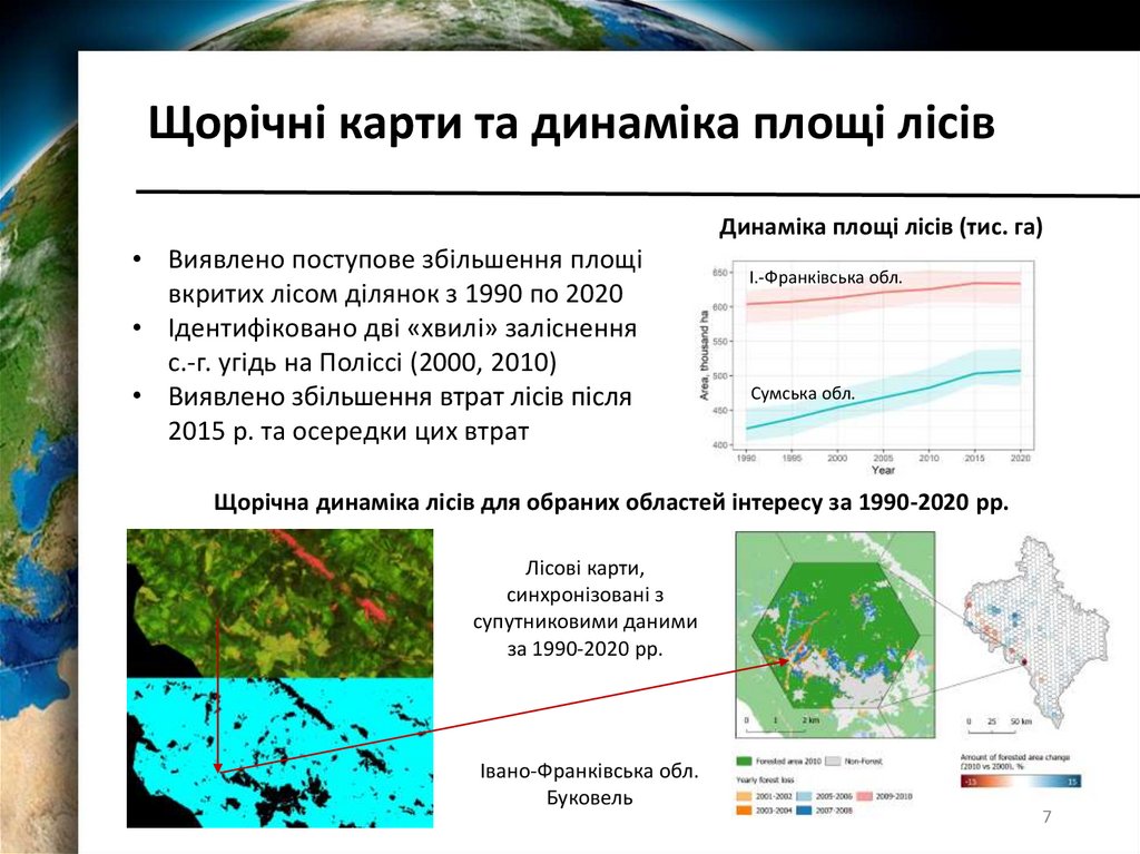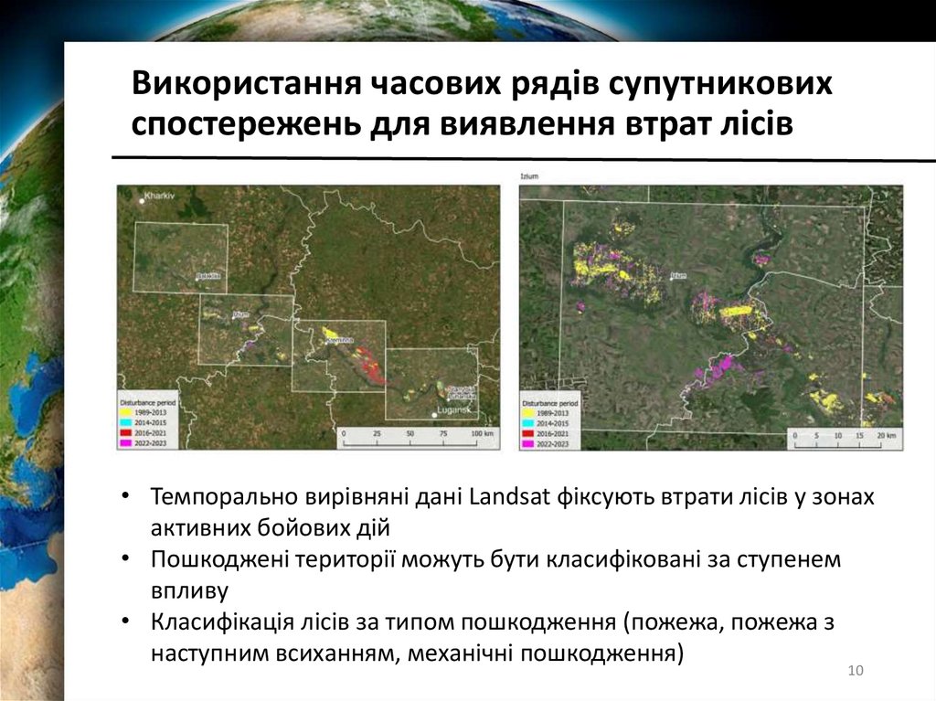 • Темпорально вирівняні дані Landsat фіксують втрати лісів у зонах