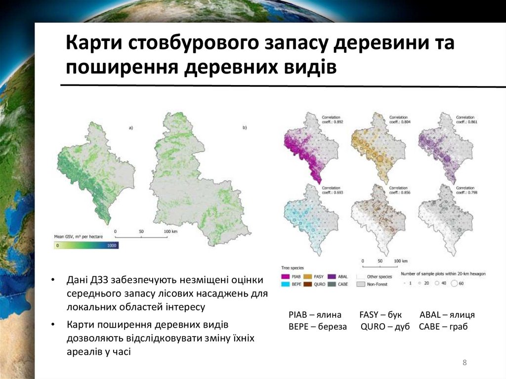 Карти стовбурового запасу деревини тапоширення деревних видів