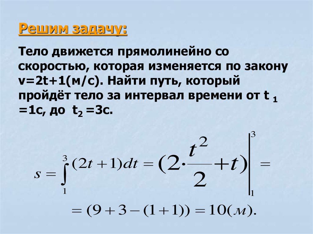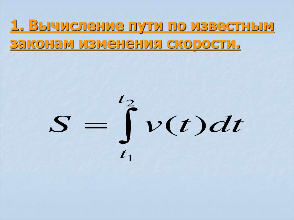 1. Вычисление пути по известнымзаконам изменения скорости.