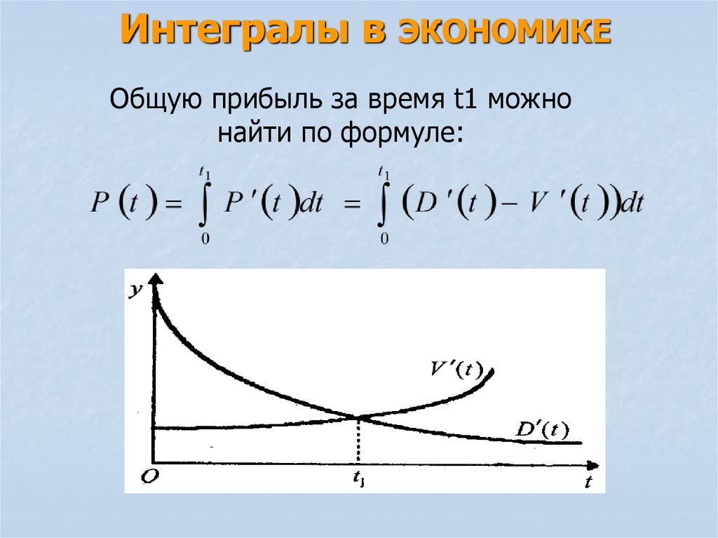 Интегралы в ЭКОНОМИКЕОбщую прибыль за время t1 можно