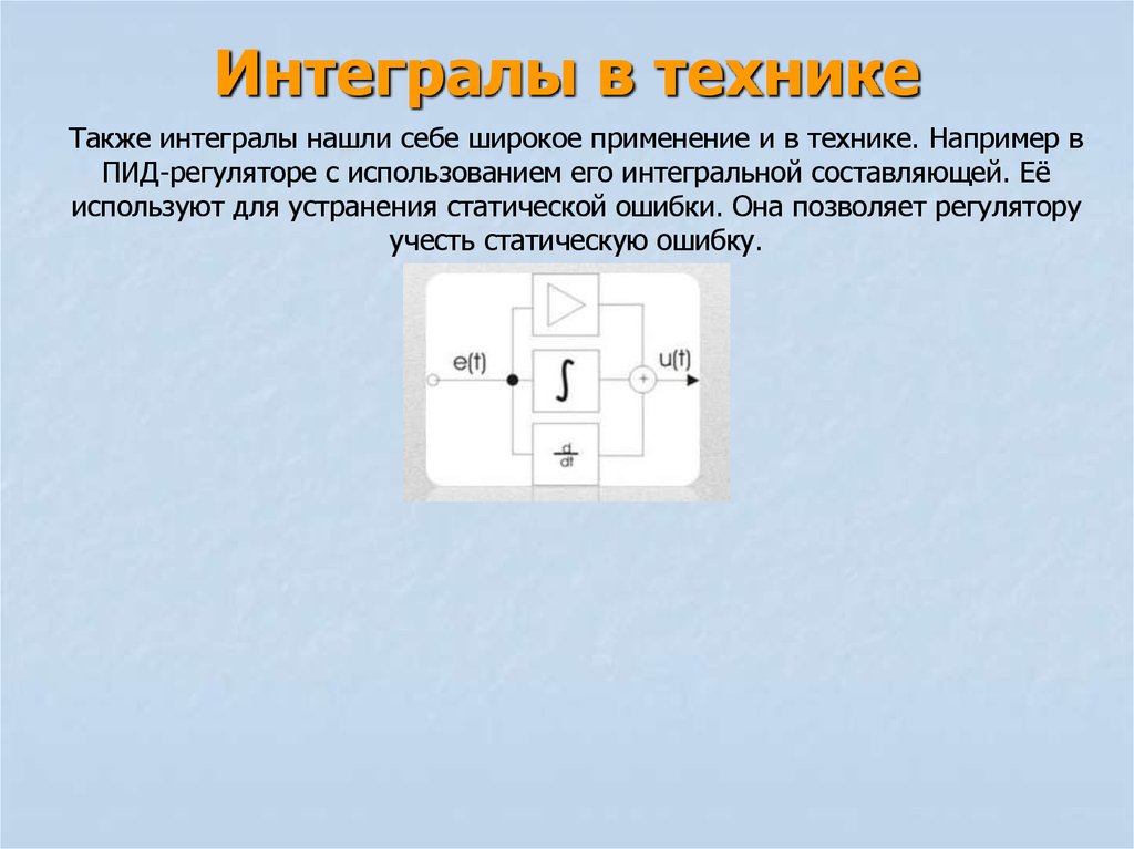 Интегралы в техникеТакже интегралы нашли себе широкое применение и в технике. Например в
