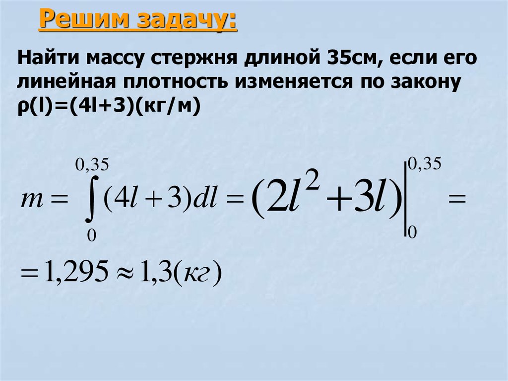 Решим задачу:Найти массу стержня длиной 35см, если его