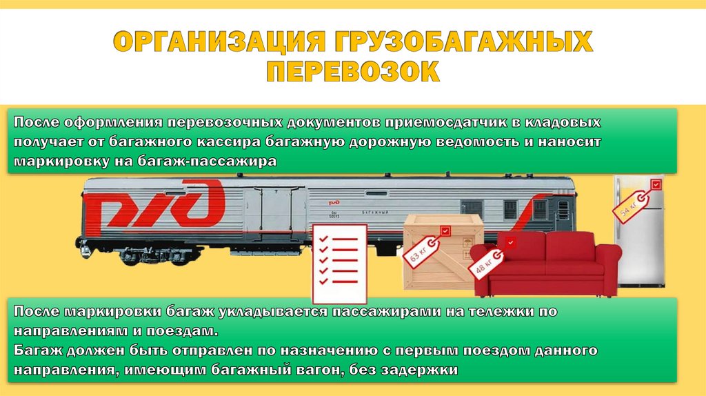 Грузобагаж - объект, принятый от физического или юридического лица вустановленном порядке для перевозки в пассажирском, почтовобагажном или грузопассажирском поезде