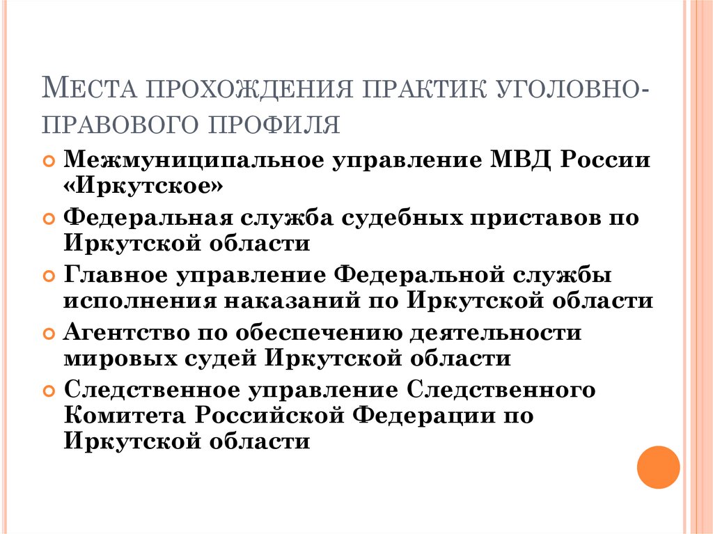 Места прохождения практик уголовно - правового профиля