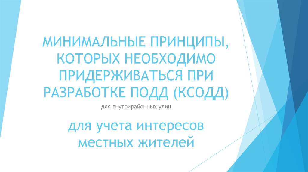 1. МИНИМАЛЬНЫЕ ПРИНЦИПЫ, КОТОРЫХ НЕОБХОДИМО ПРИДЕРЖИВАТЬСЯ ПРИ РАЗРАБОТКЕ ПОДД (КСОДД)