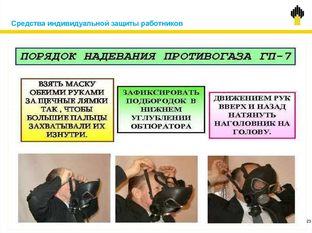 Средства индивидуальной защиты работниковПравила применения гражданского противогаза ГП-7: