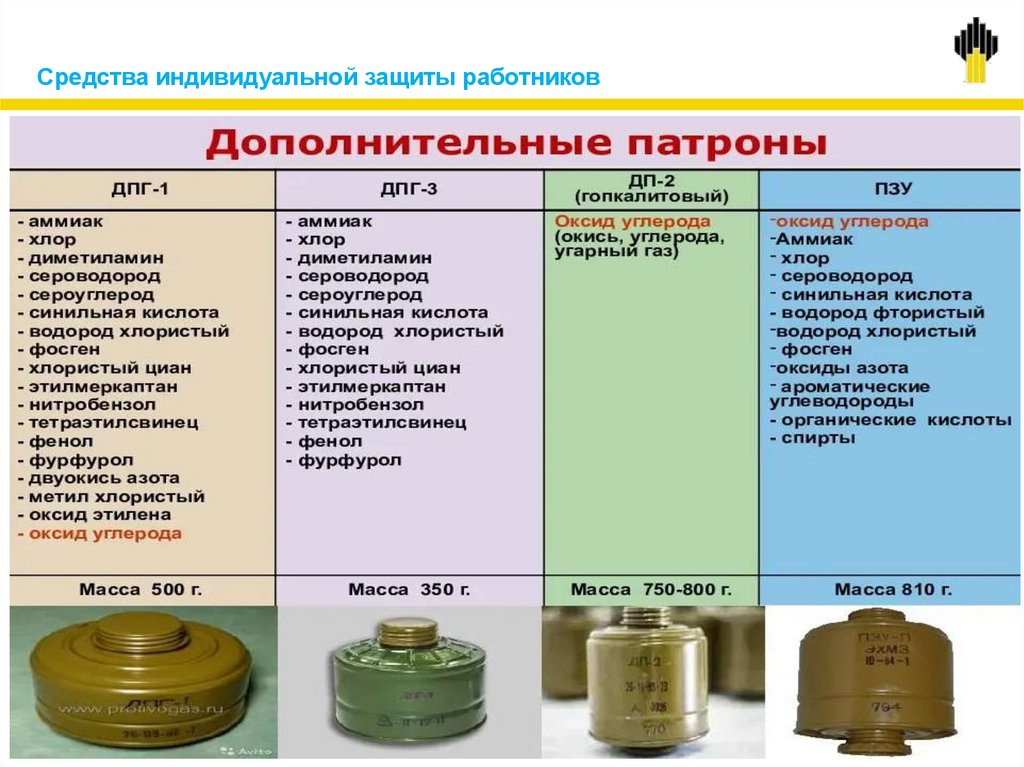 - средства защиты органов дыхания (фильтрующие противогазы,
