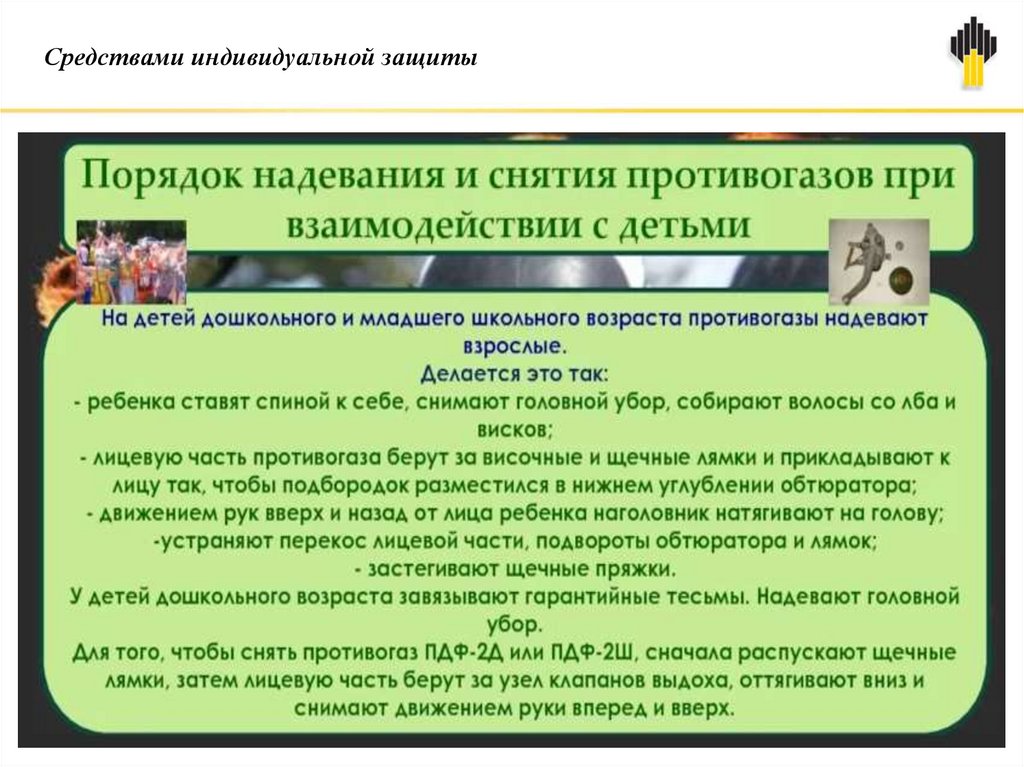 Средствами индивидуальной защитыПротивогазы для защиты детей