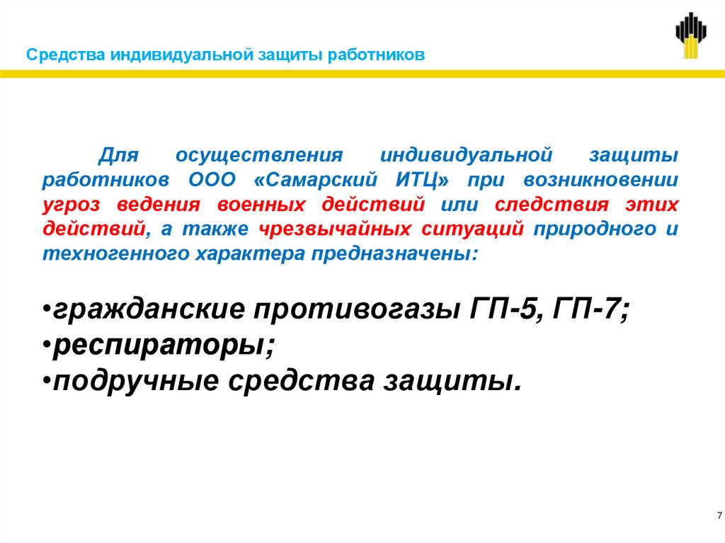 Средства индивидуальной защиты работниковХарактеристики противогаза ГП-7: