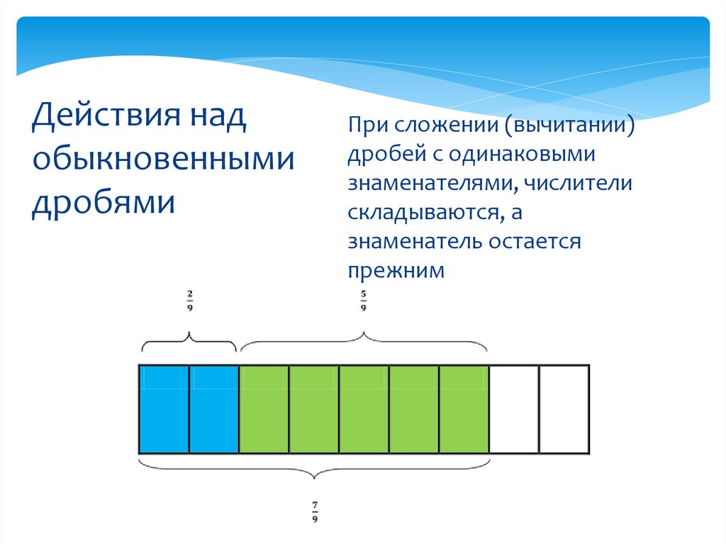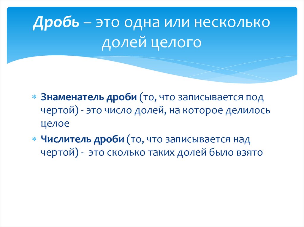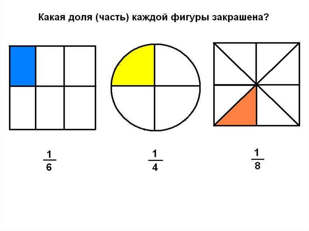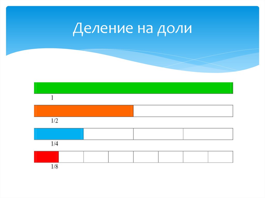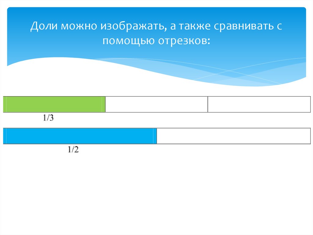Доли можно изображать, а также сравнивать спомощью отрезков: