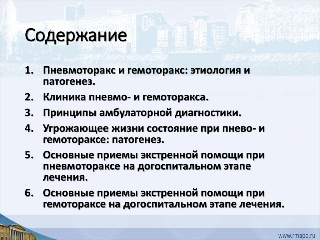 Содержание1. Пневмоторакс и гемоторакс: этиология и