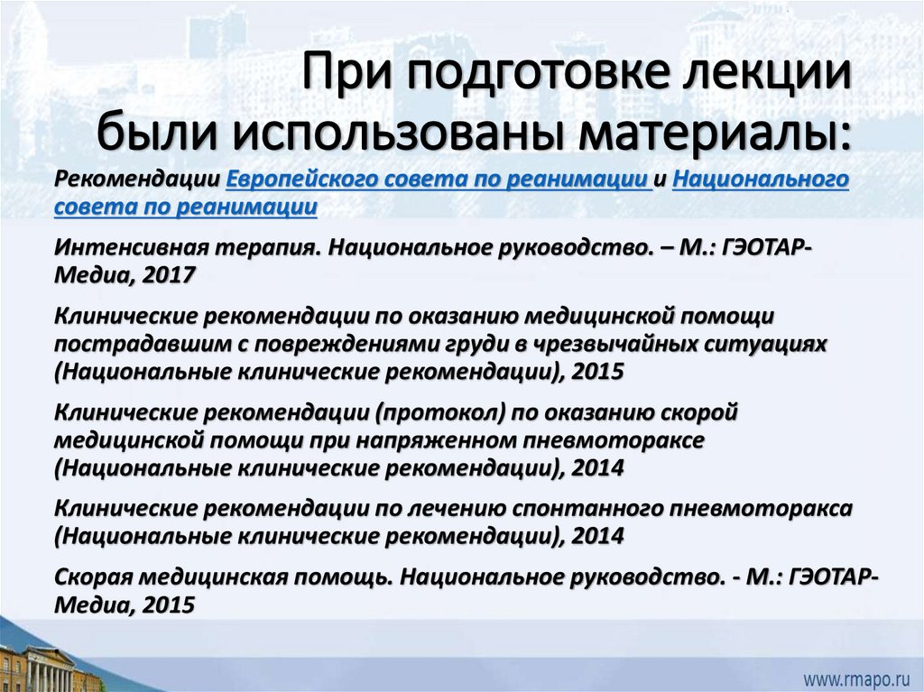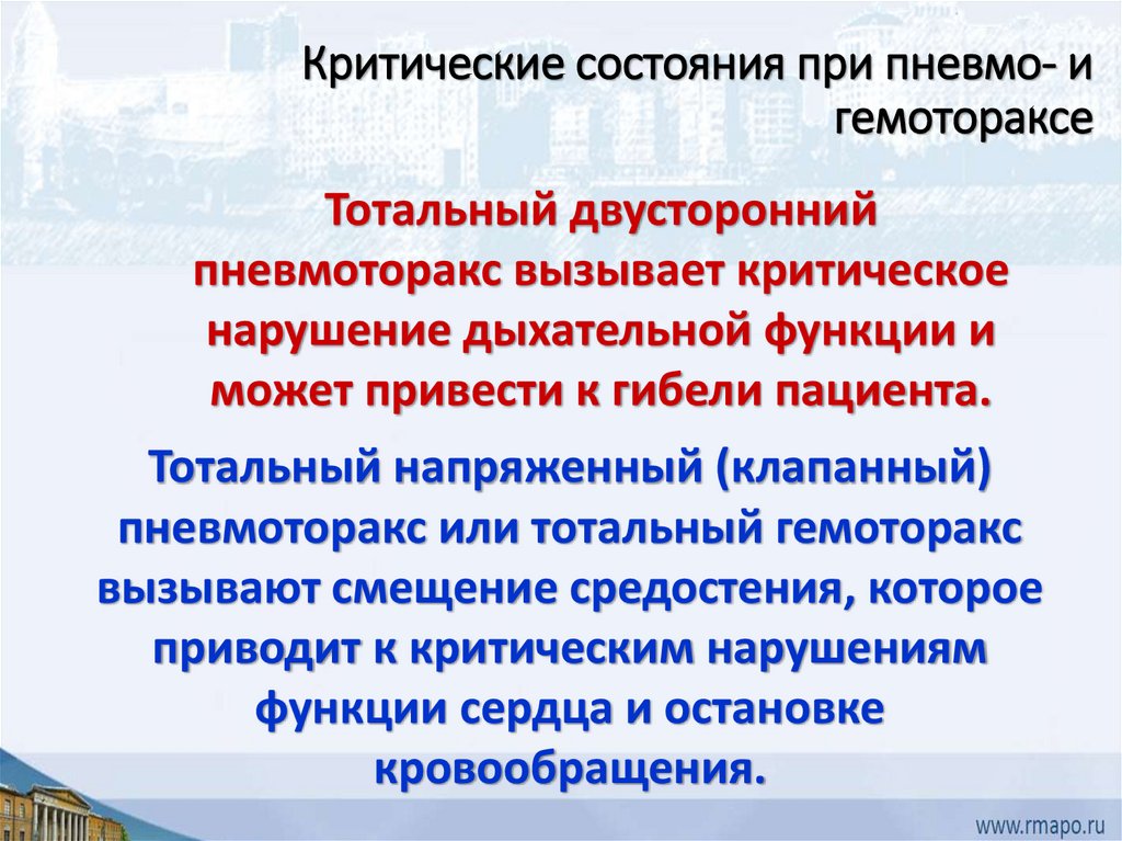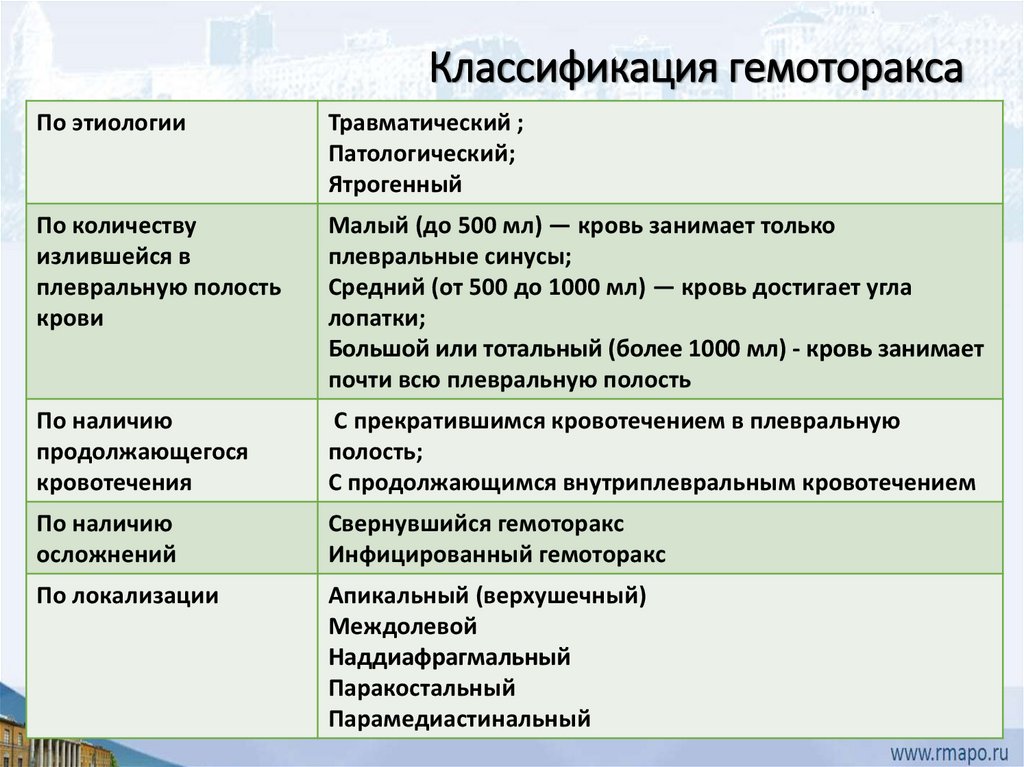 Пневмо- и гемоторакс: клиника, диагностика, неотложная помощь. Лекция 11