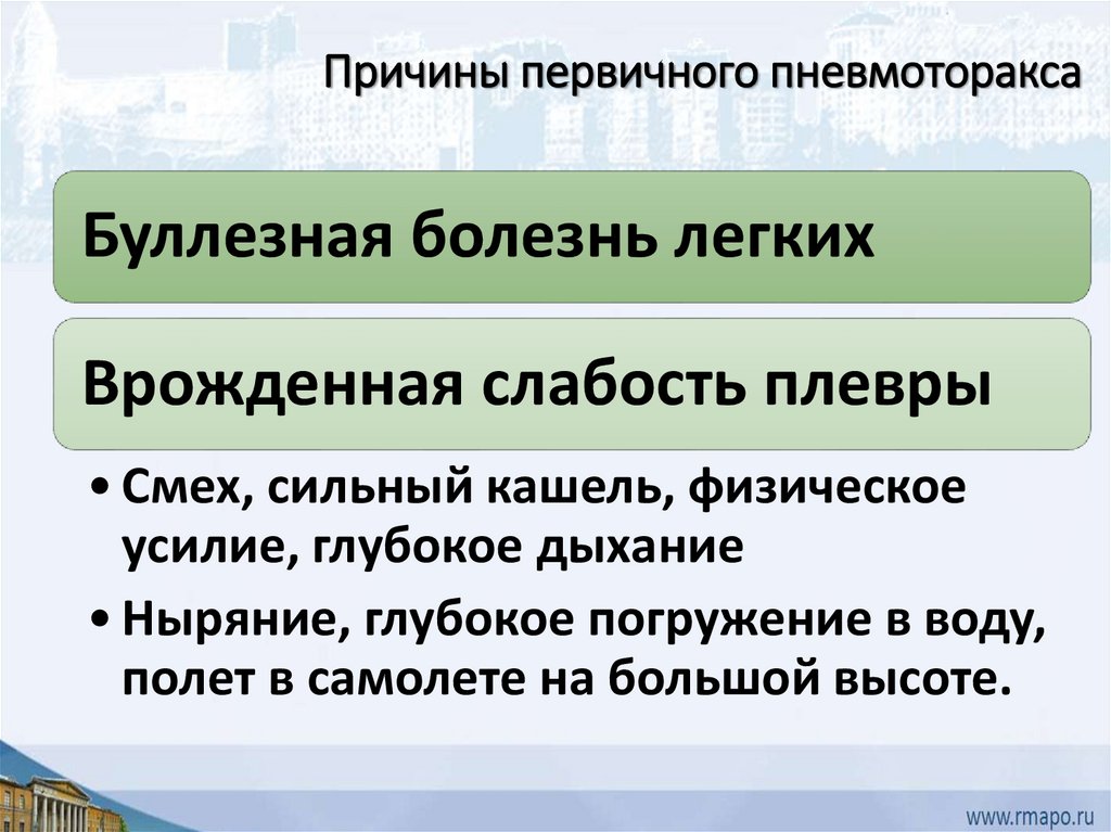 Причины первичного пневмотораксаБуллезная болезнь легких
