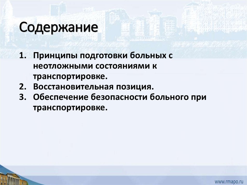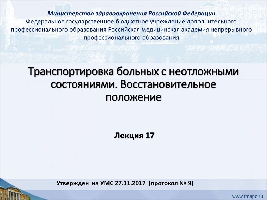 Транспортировка больных с неотложными состояниями. Восстановительное положение. Лекция 17