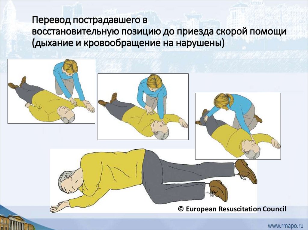 Перевод пострадавшего ввосстановительную позицию до приезда скорой помощи