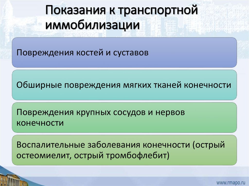 На конечностях необходимо иммобилизовать два близлежащих к повреждению сустава, а при травме бедра —