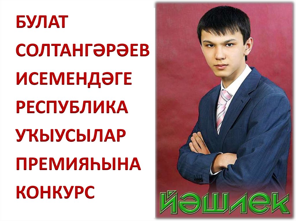 1. БУЛАТ СОЛТАНГӘРӘЕВ ИСЕМЕНДӘГЕ РЕСПУБЛИКА ПРЕМИЯҺЫ