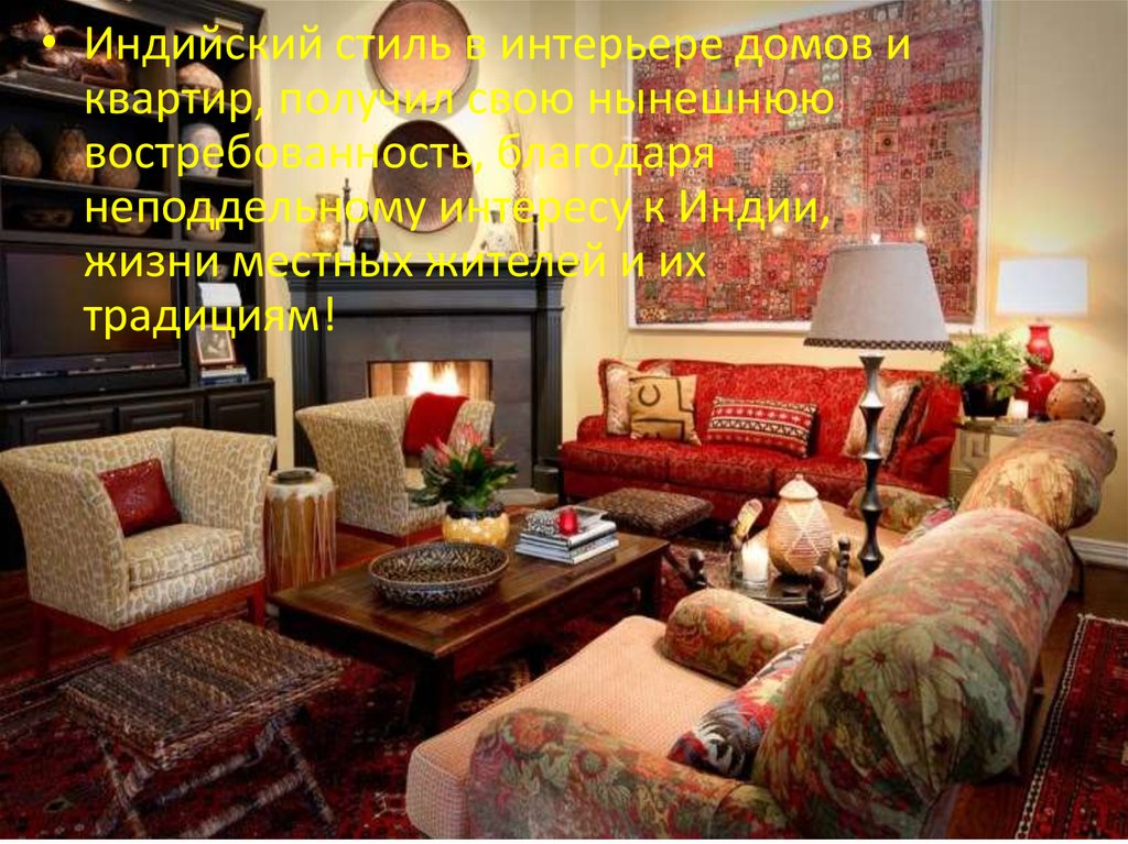 • Индийский стиль в интерьере домов иквартир, получил свою нынешнюю