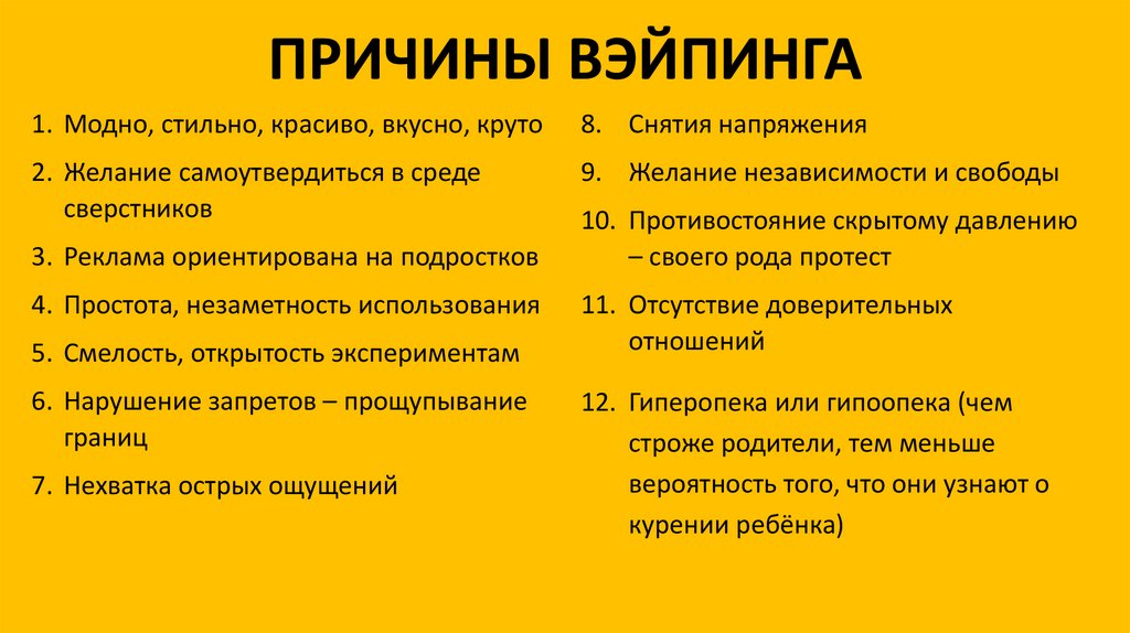 ПРИЧИНЫ ВЭЙПИНГА1. Модно, стильно, красиво, вкусно, круто