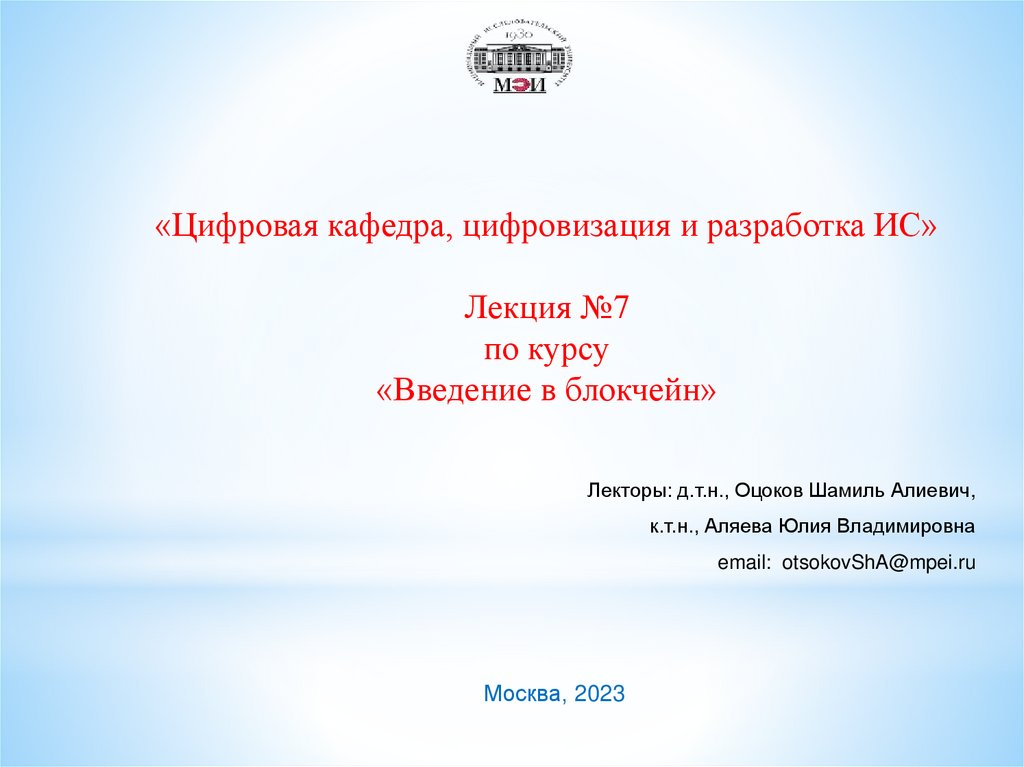«Цифровая кафедра, цифровизация и разработка ИС»Лекция №7