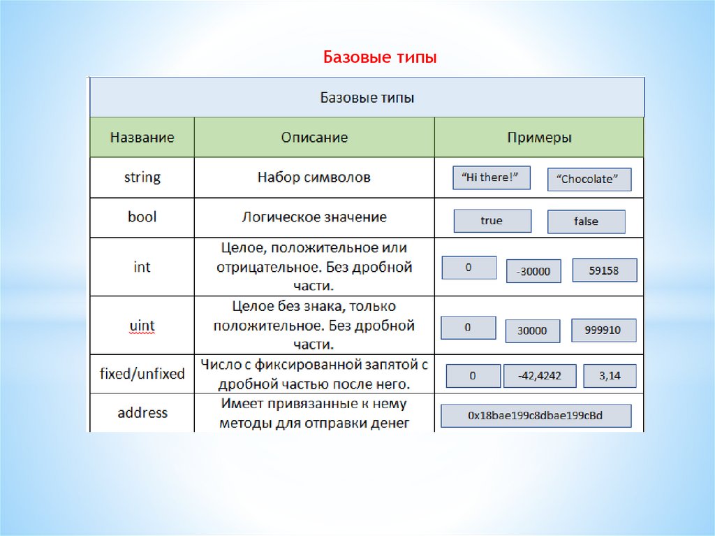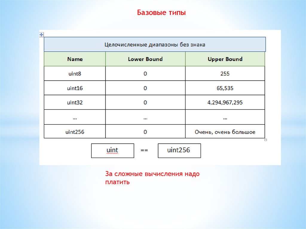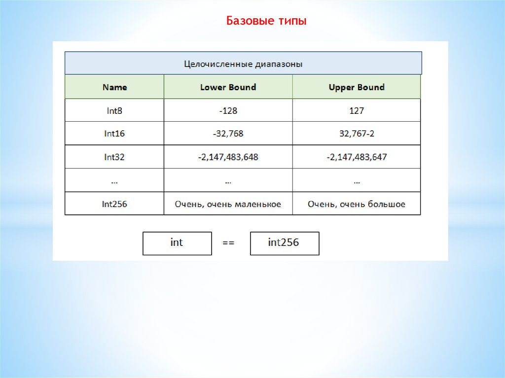 бит) и от int8 до int256. uint и int являются псевдонимами для