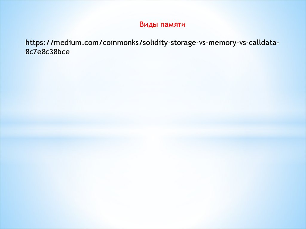 Виды памятиhttps://medium.com/coinmonks/solidity-storage-vs-memory-vs-calldata8c7e8c38bce