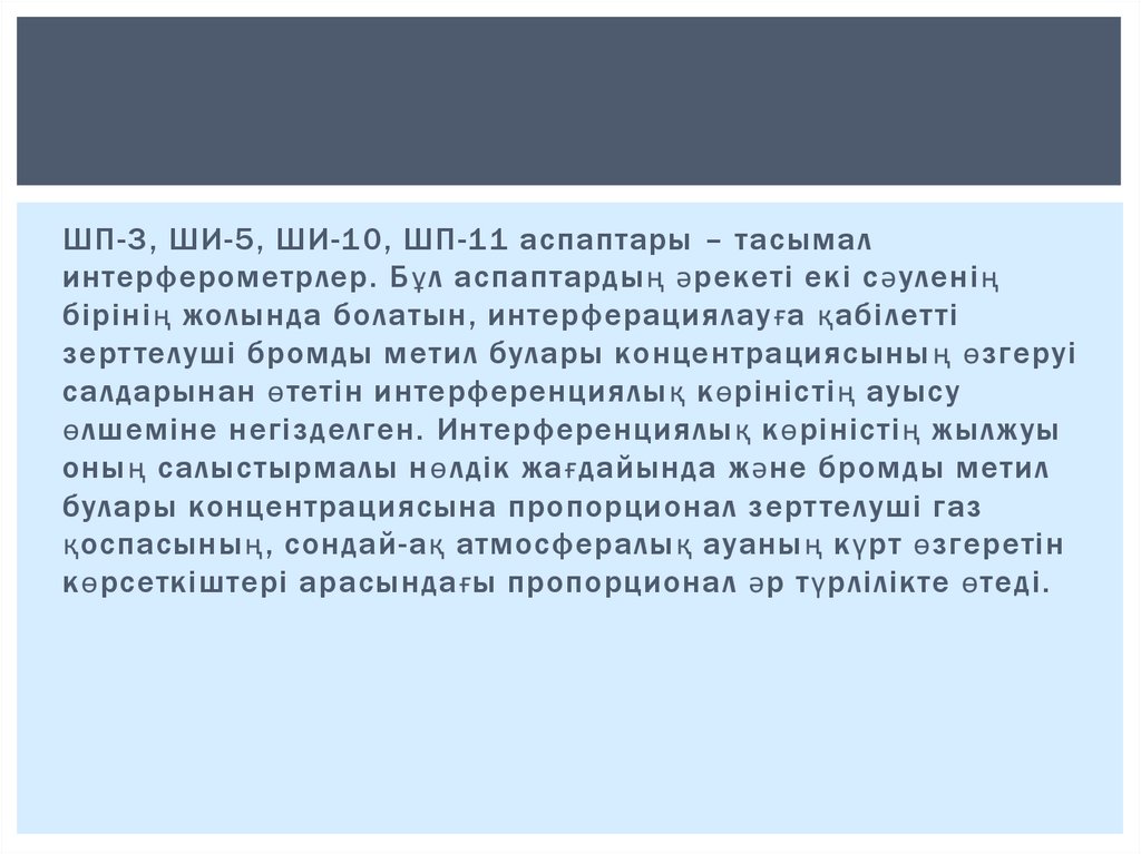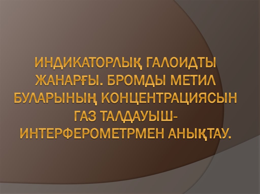 1. Индикаторлық галоидты жанарғы. Бромды метил буларының концентрациясын газ талдауыш-интерферометрмен анықтау.