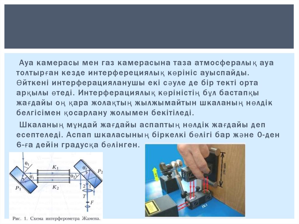 Ауа камерасы мен газ камерасына таза атмосфералы қ ауатолтырған кезде интерферециялық көрініс ауыспайды.