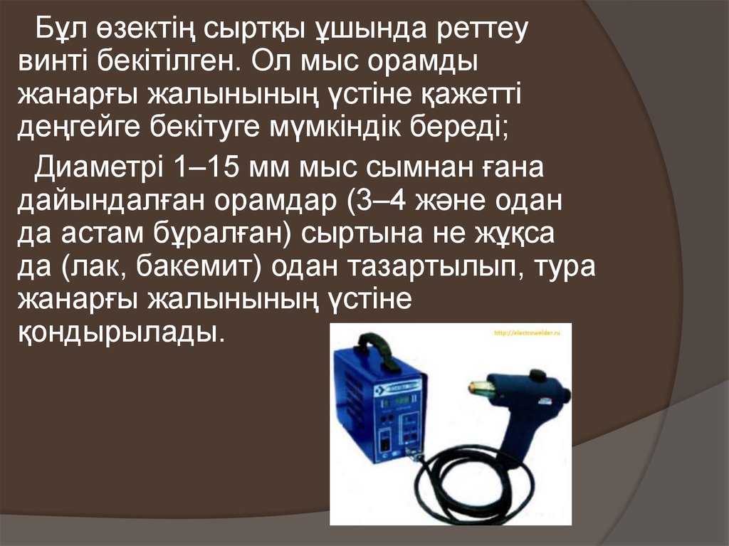 1.Жез орам таза болуға тиіс. Жанарғыны тұтатқан