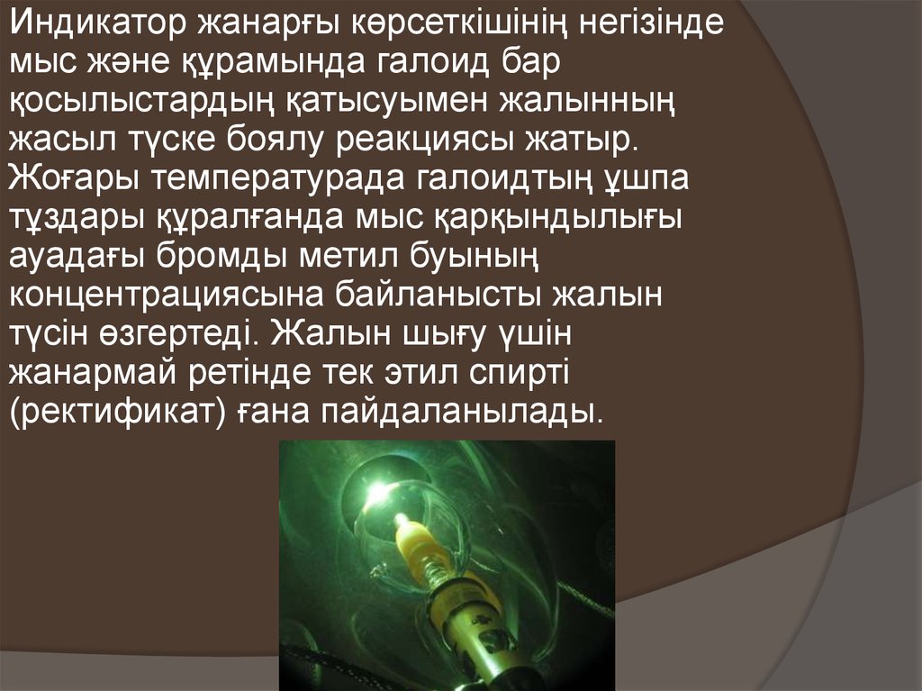 Индикатор жанарғы көрсеткішінің негізіндемыс және құрамында галоид бар