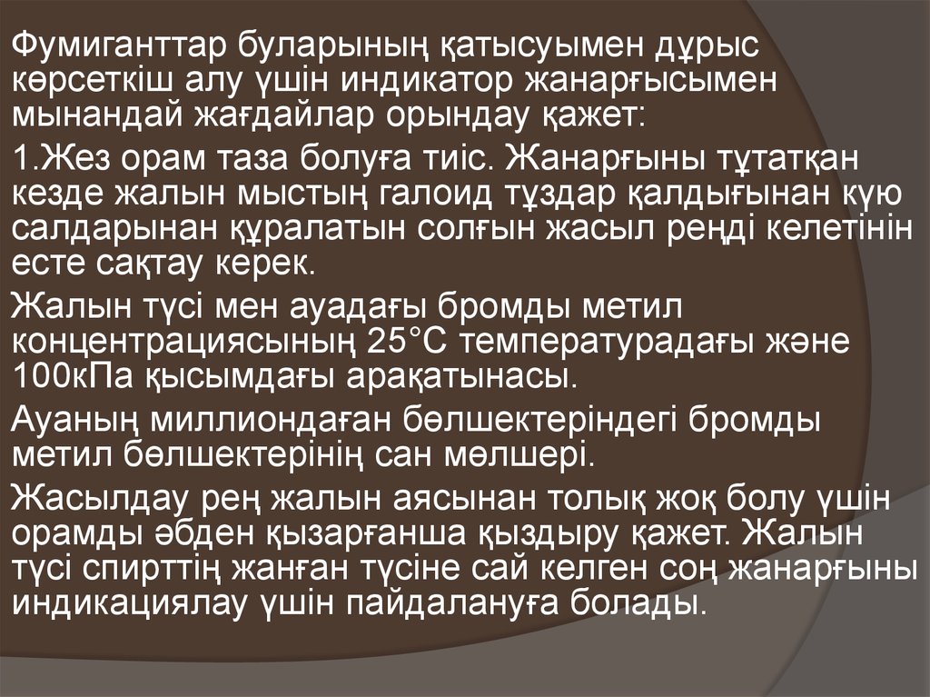 Фумиганттар буларының қатысуымен дұрыскөрсеткіш алу үшін индикатор жанарғысымен