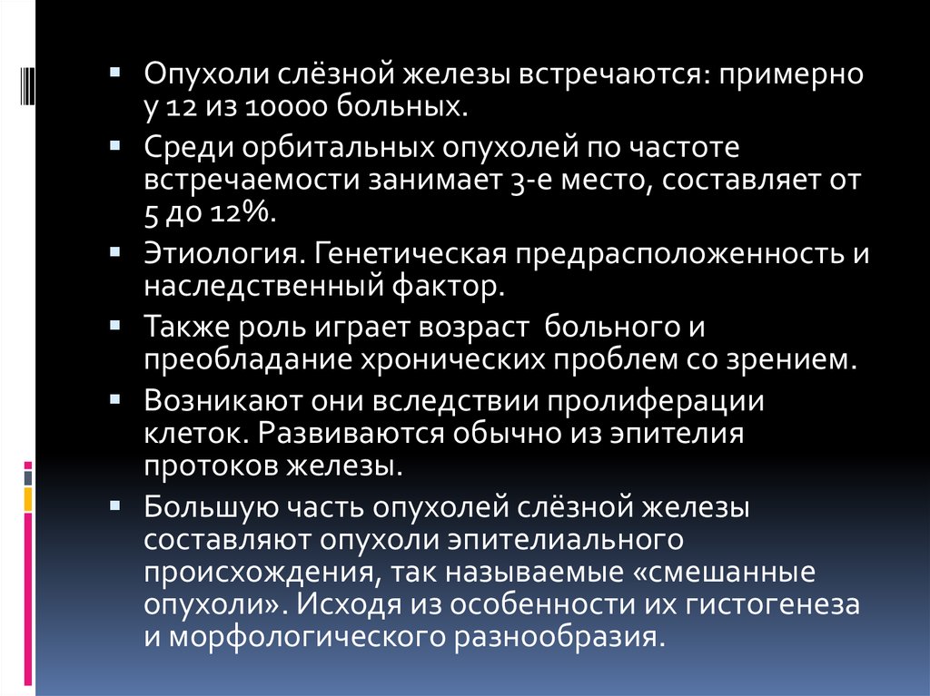 Опухоли слёзной железы встречаются: примерноу 12 из 10000 больных.