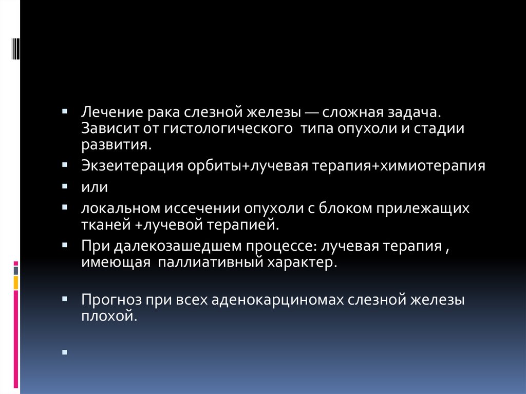 Лечение рака слезной железы — сложная задача.Зависит от гистологического типа опухоли и стадии