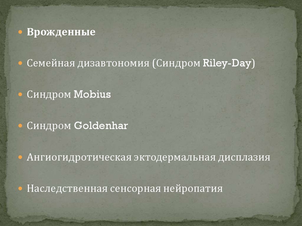 ВрожденныеСемейная дизавтономия (Синдром Riley-Day)