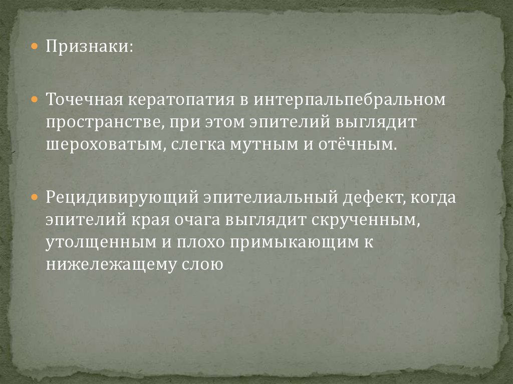 Увеличение эпителиального дефекта состромальным отёком и инфильтрацией
