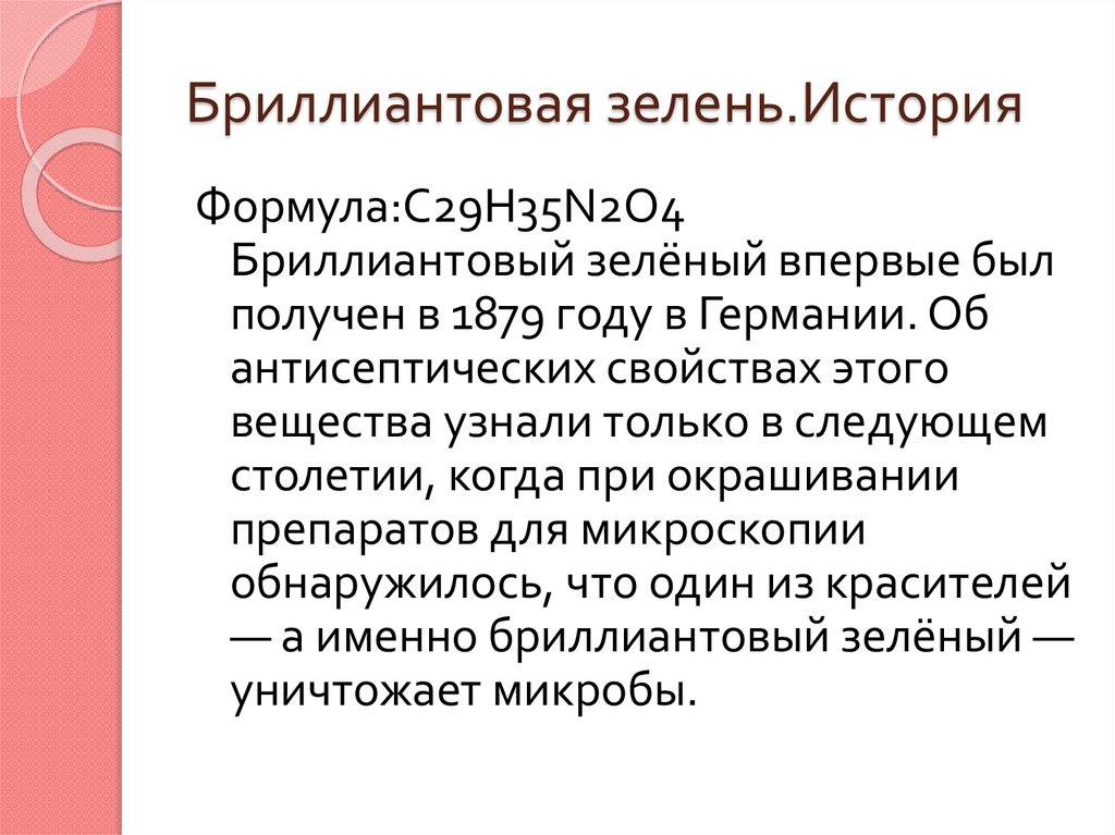 Бриллиантовая зелень.ИсторияФормула:C29H35N2O4