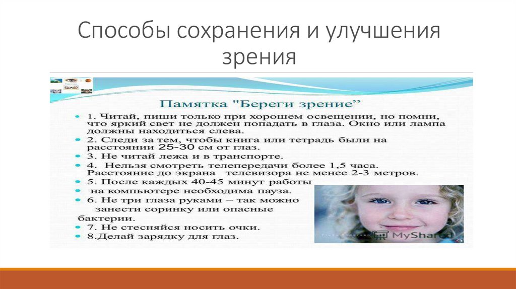 Способы сохранения и улучшениязрения