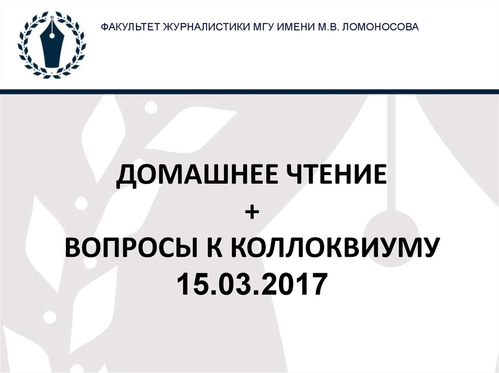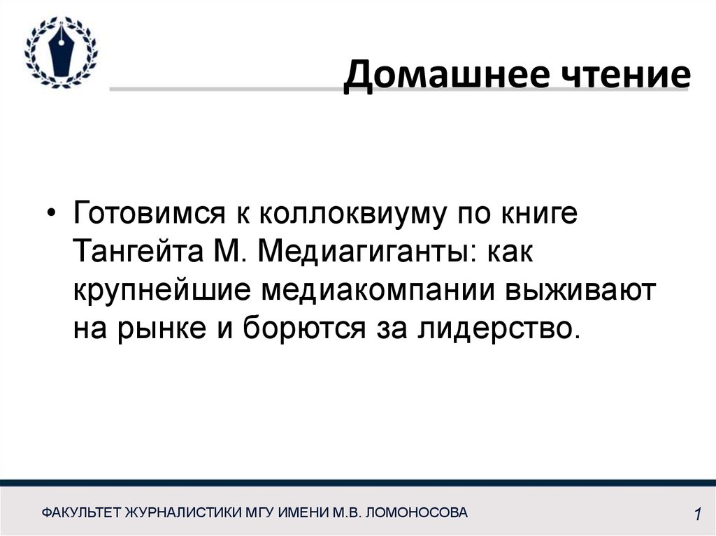 ФАКУЛЬТЕТ ЖУРНАЛИСТИКИ МГУ ИМЕНИ М.В. ЛОМОНОСОВАДОМАШНЕЕ ЧТЕНИЕ