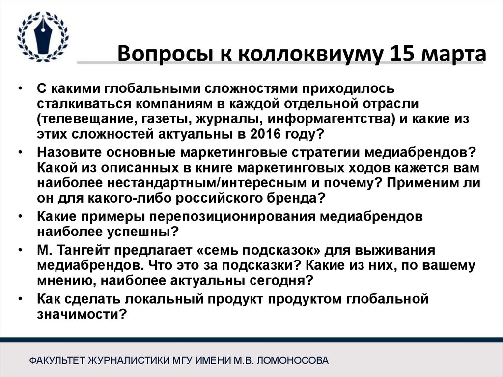 Вопросы к коллоквиуму 15 марта• C какими глобальными сложностями приходилось