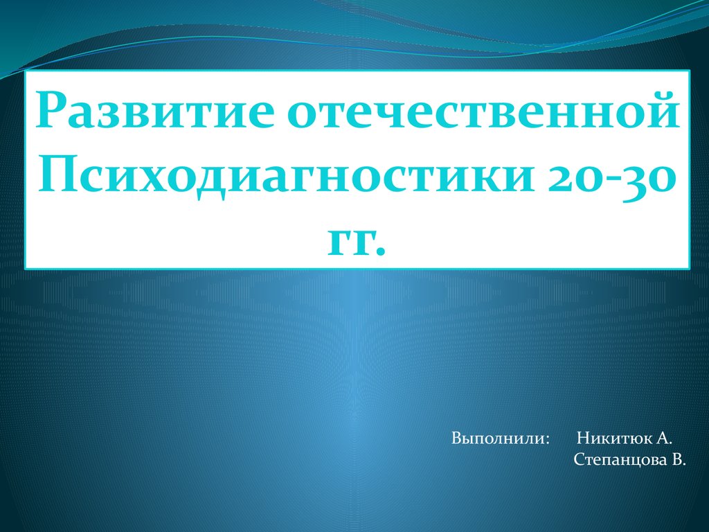 4. Наиболее интенсивно практика отечественной психодиагностики развивалась в 20-х и начале 30-х гг. в связи с развитием педологии и психотехник