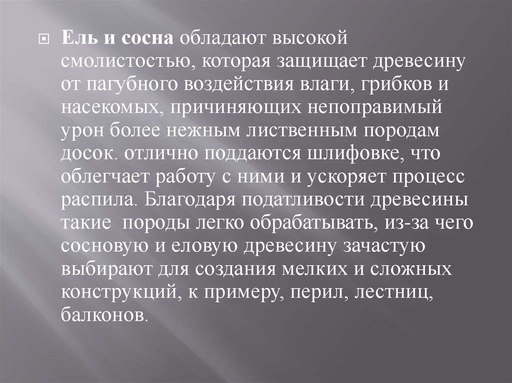 Ель и сосна обладают высокойсмолистостью, которая защищает древесину