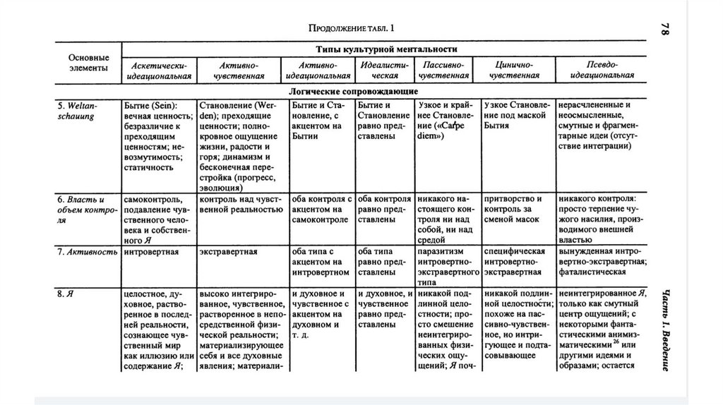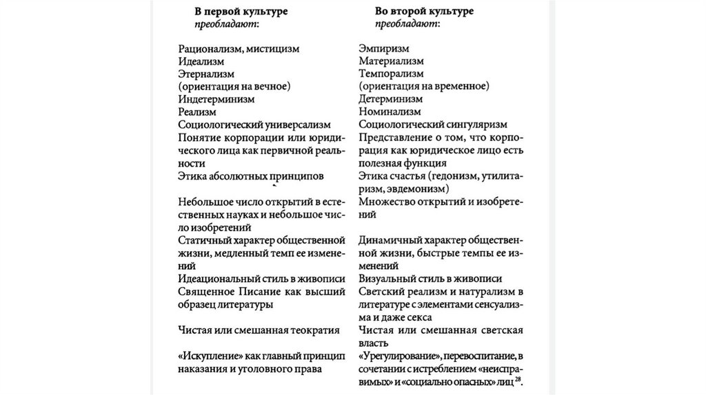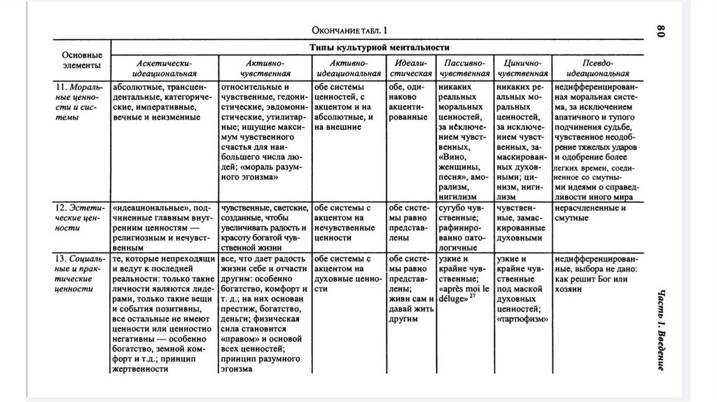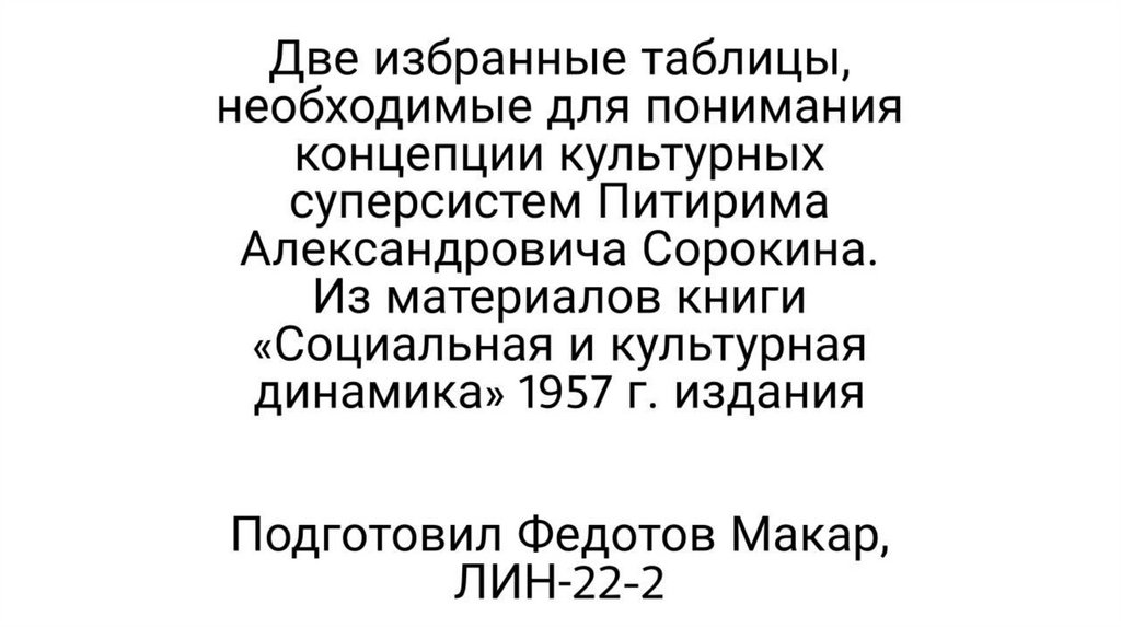Две избранные таблицы для изучения концепции культурных суперсистем П.А. Сорокина