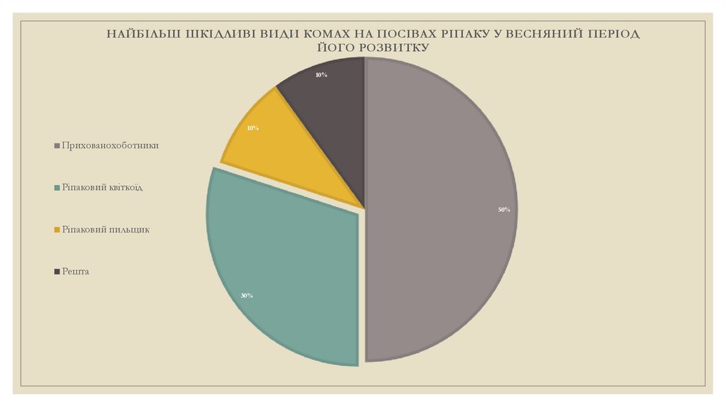 ◦ Найбільше у весняний період посівам шкодять ріпаковий квіткоїд та різні види прихованохобоників, які можуть значно