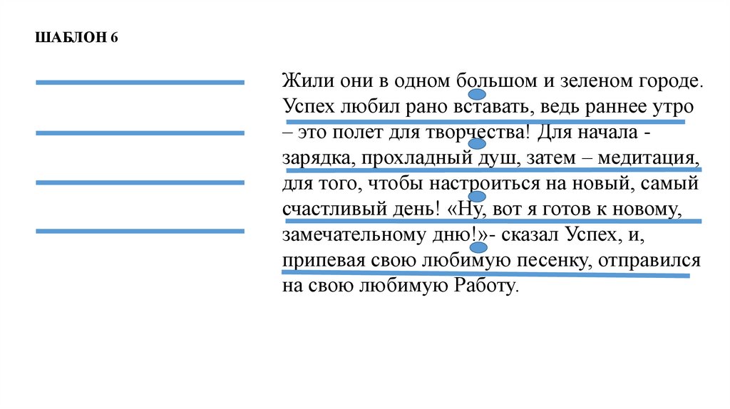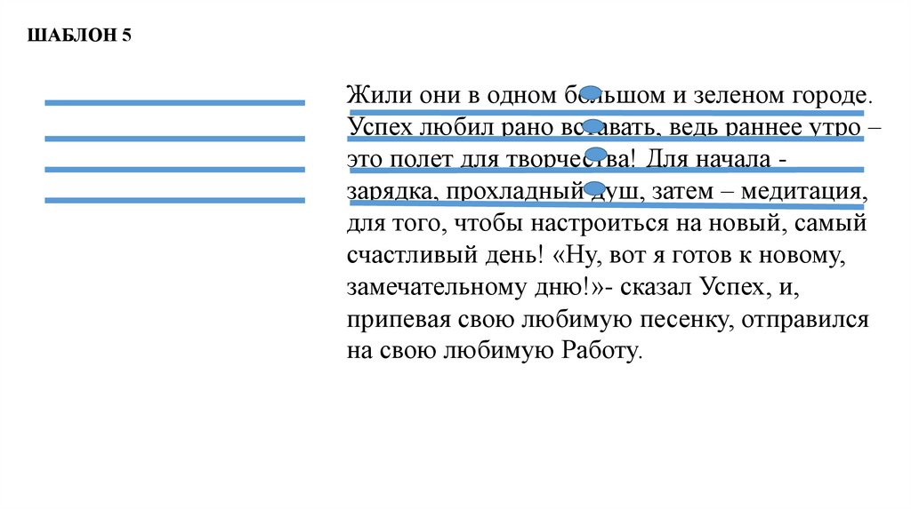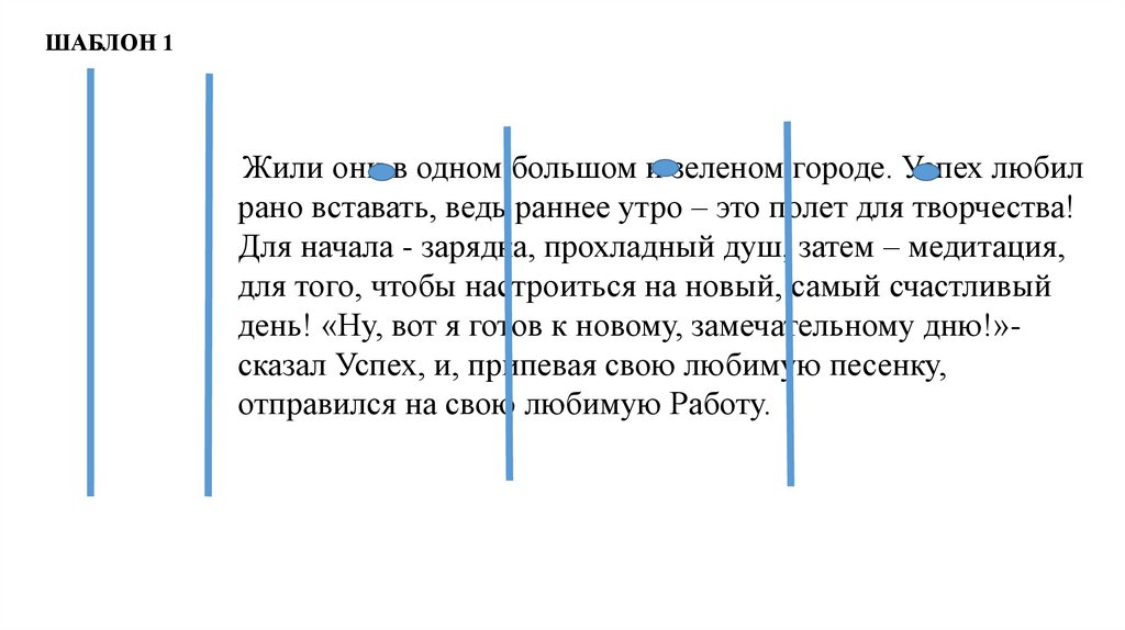ШАБЛОН 1Жили они в одном большом и зеленом городе. Успех любил