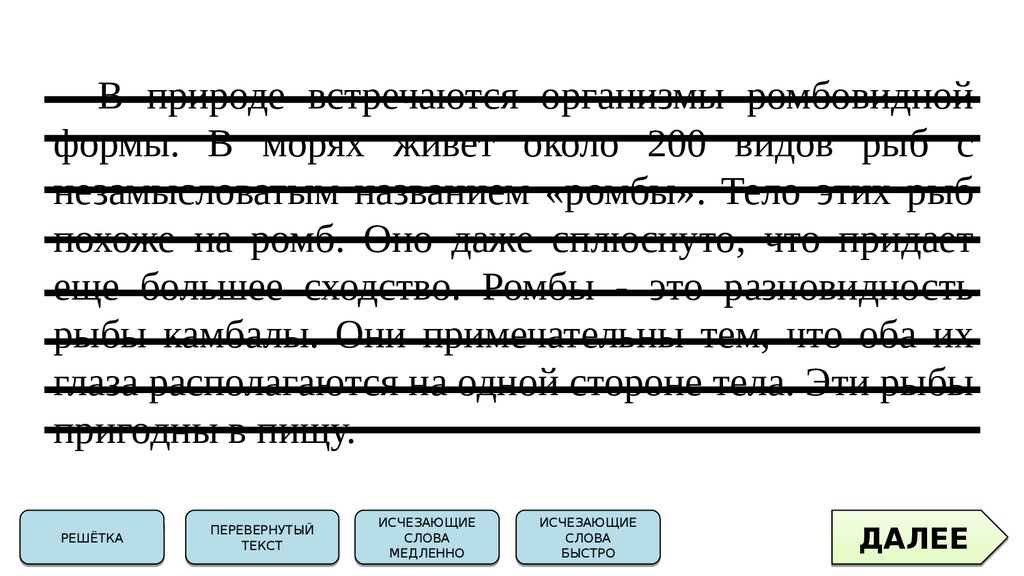 В природе встречаются организмы ромбовиднойформы. В морях живет около 200 видов рыб с