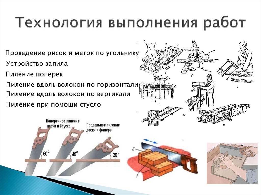Проведение рисок и меток по угольникуУстройство запила