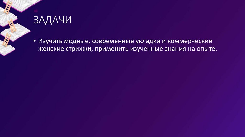 ЗАДАЧИ• Изучить модные, современные укладки и коммерческие